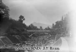 Buitenzorg, horak Salak, napravo Amherstia, uprostřed Tamarindus a nalevo Pragraia, palma Pheonix, 18.V.1929