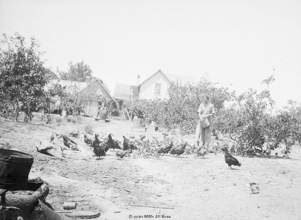Silver Hill, Ala., kuřata a slepice při krmení u Machulků. Česká farma, 6.V.1922 - Silver Hill - 1922