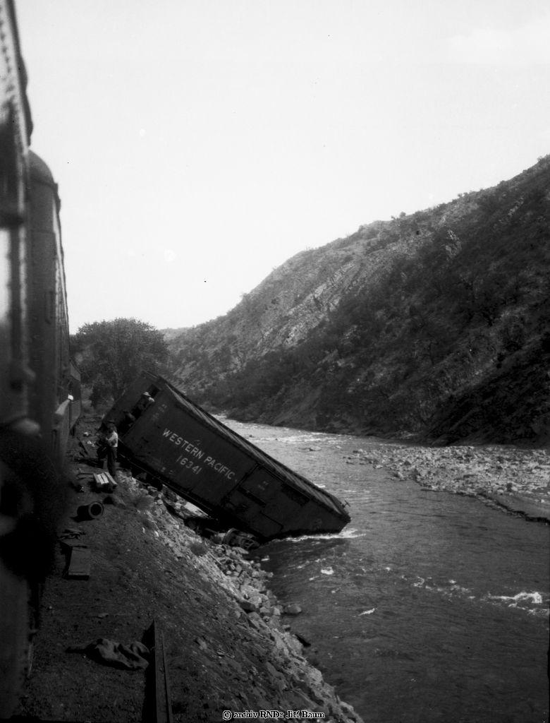 Železnice - nehoda - vagon spadlý do vody někde u Royal George, 1922 - Různé - 1922