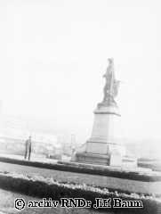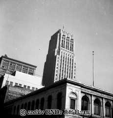 St.Louis, socha zakladatele města De Laclédé Liquest a pozadí mrakodrapy, 6.XI.1921 - Saint Louis - 1921