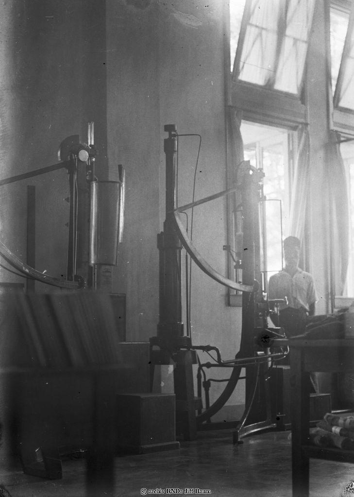 Rostliny, stroj na měření pevnosti gumy v ústavu Rubber Institut, Buitenzorg, Jáva, 18.V.1929 - Rostliny - 1929 - F2