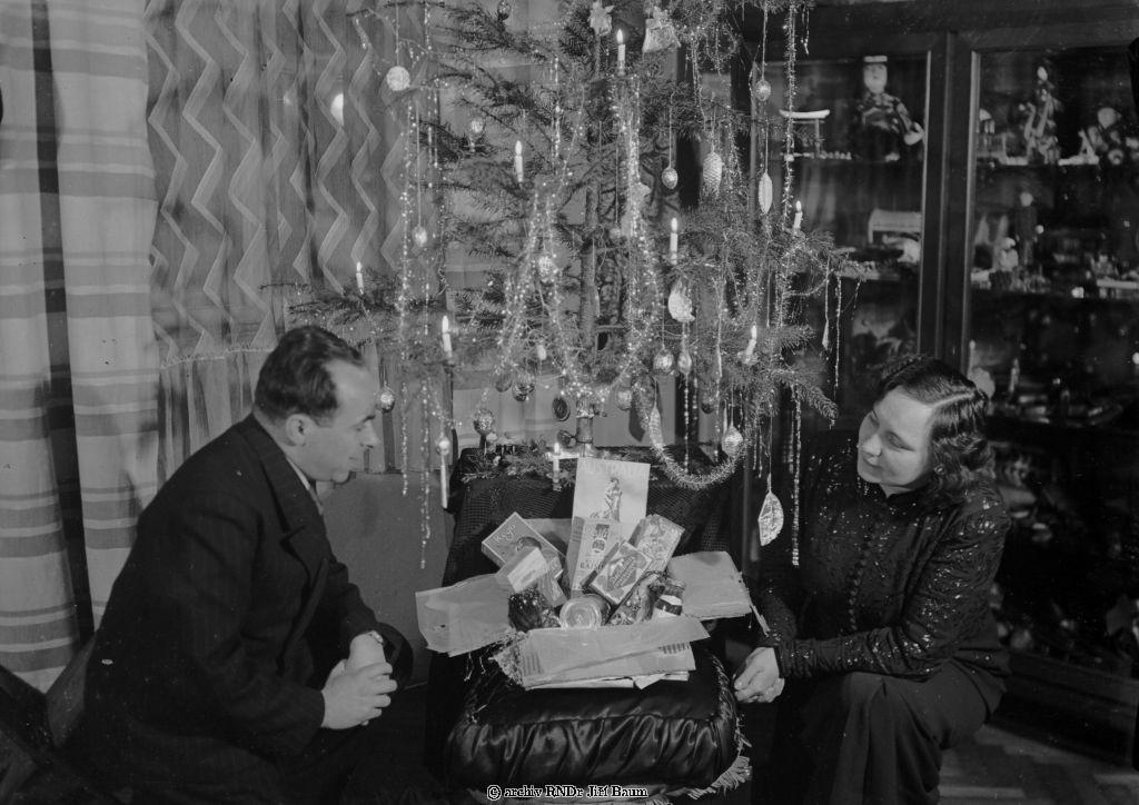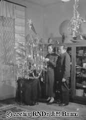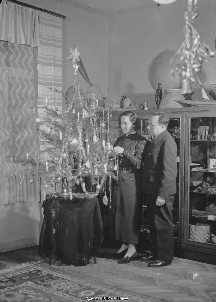 Baum,manželé Baumovi u vánočního stromku. - Rodinné - 26.XII.1937 - D3.