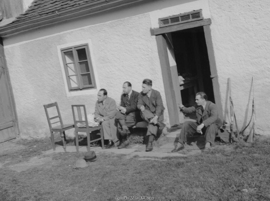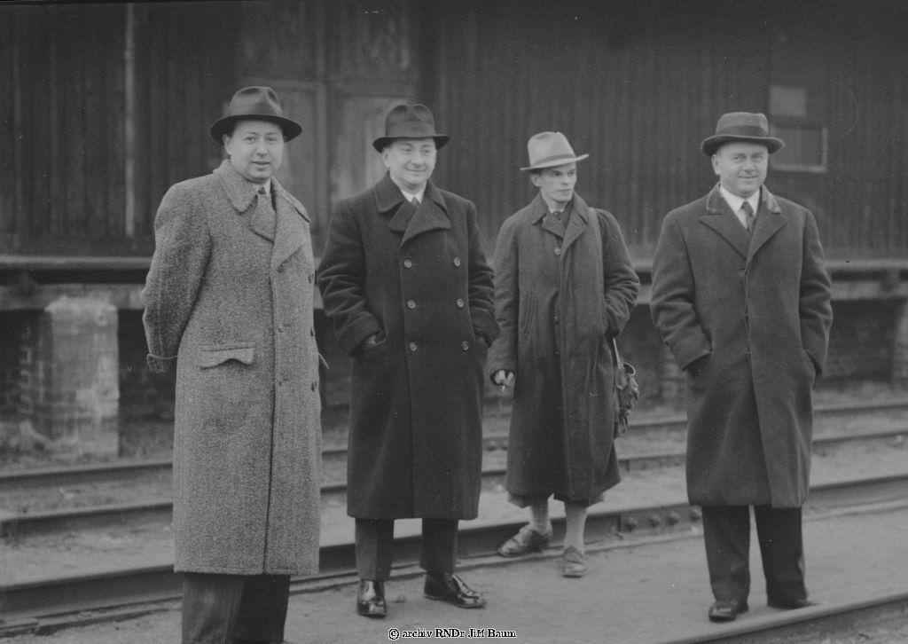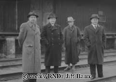 Na stanici ve Lnářích;Jiří,Dr.Štěpánek,Dr.Mařan a p.Matouš - Rodinné - 25/3.1938. - F1.