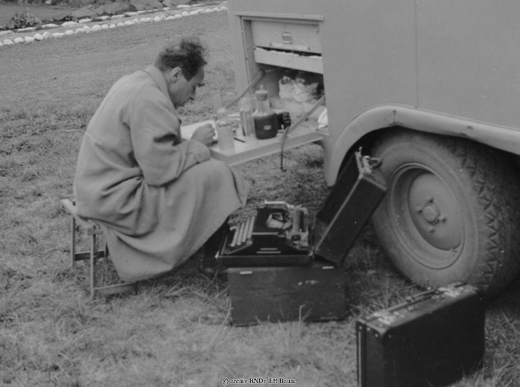 Baum,Dr.požádá sběry u auta Machadodorp,Transvál - Rodinné - 19.X.1938. - F1.