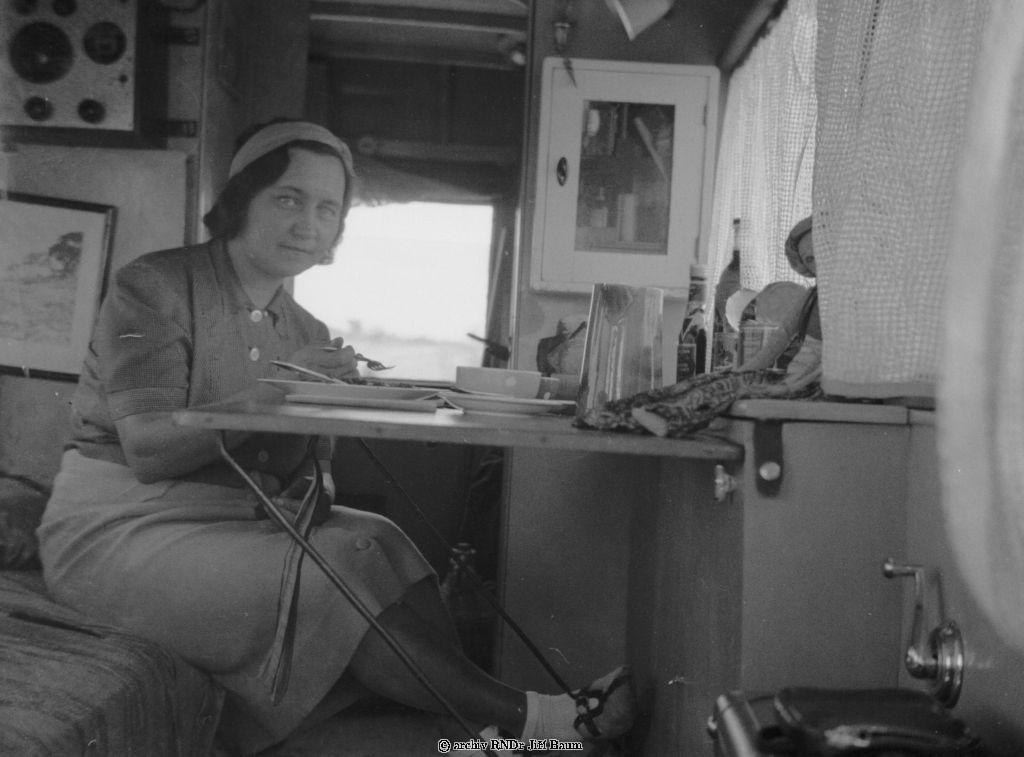 Baumová Růžena při obědě v autě.U Lobatsi, Bechuanaland. - Rodinné - 10.XI.1938. - F1.