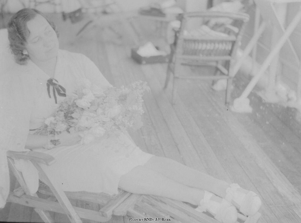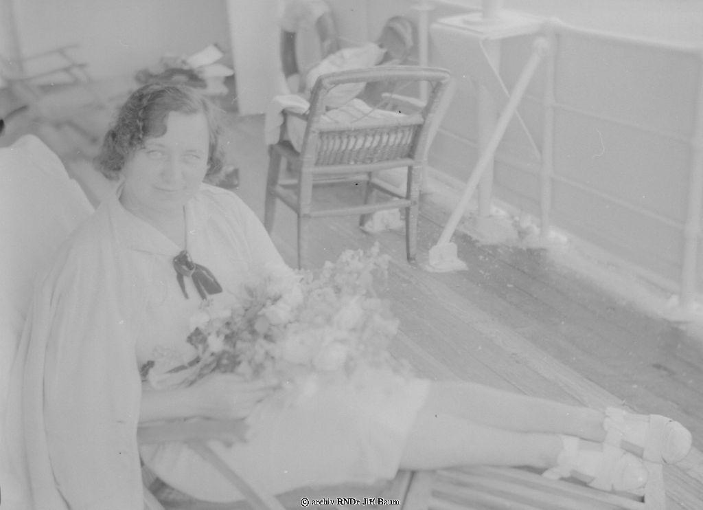 Baumová Růžena s květinami na palubě u Point Noire - Rodinné - 16.I.1939. - F1.