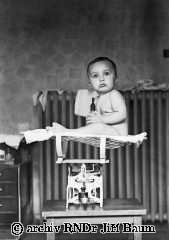 Baum Petr se váží.Ale závaží neukazují skut.váhu - Rodinné - 12.IX.1942. - D3.
