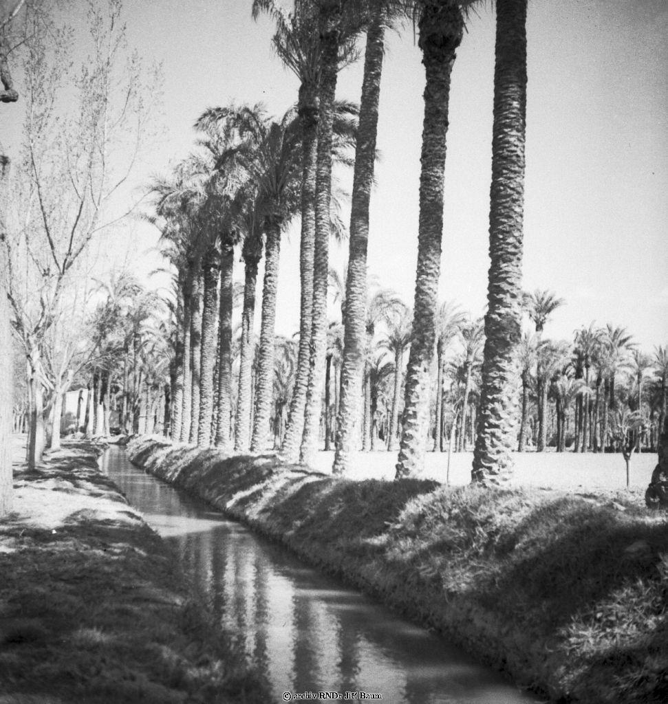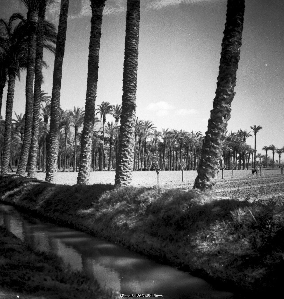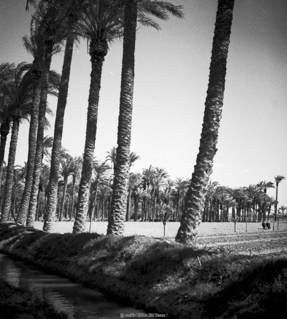 Elche.Zavodňovací kanal.©panělsko - Elche a datlové palmy. - 1934. - F2.