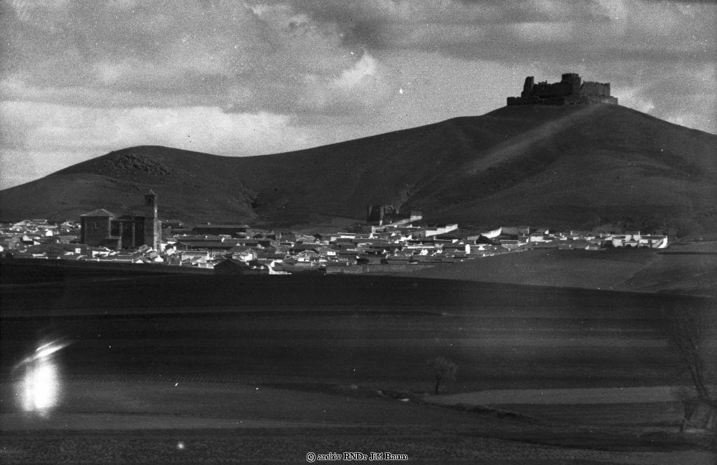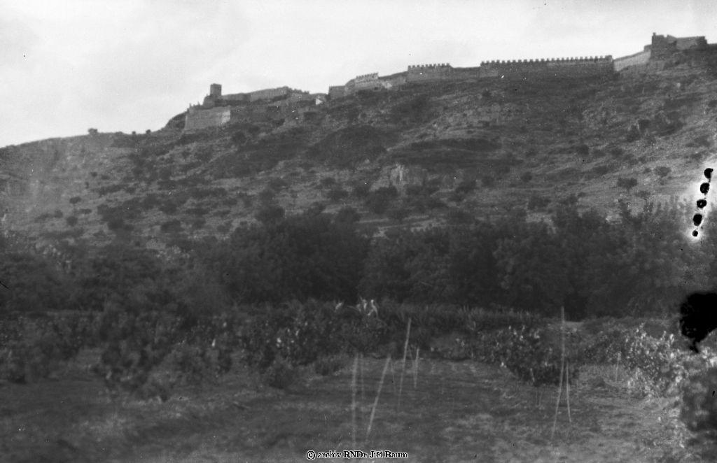 Osada.©panělská vesnice s hradbami u Oropesy - Osady a města - 1934. - F3.