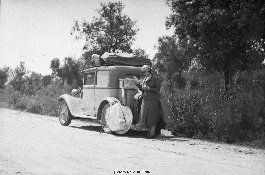 Portrét R.Baumová u auta sfotoklektorem.U Oropesy.©panělsko - Portréty - 1934. - F3.