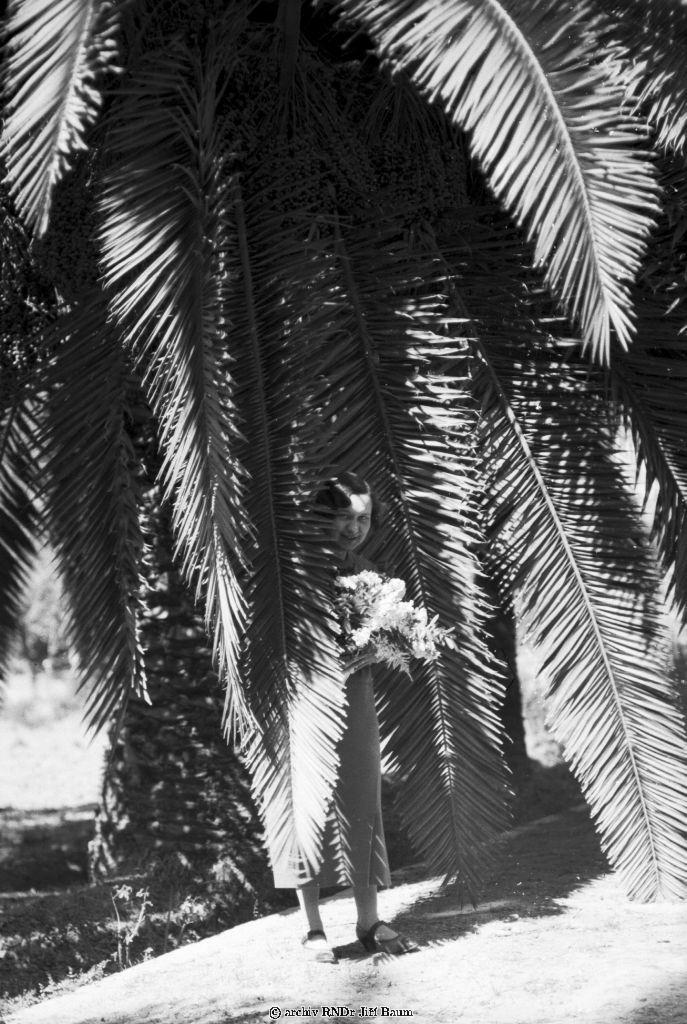 Rostliny.R.Baumová pod palmou v botanické zahradě.Valencie,©panělsko - Rostliny - 1934. - F3.
